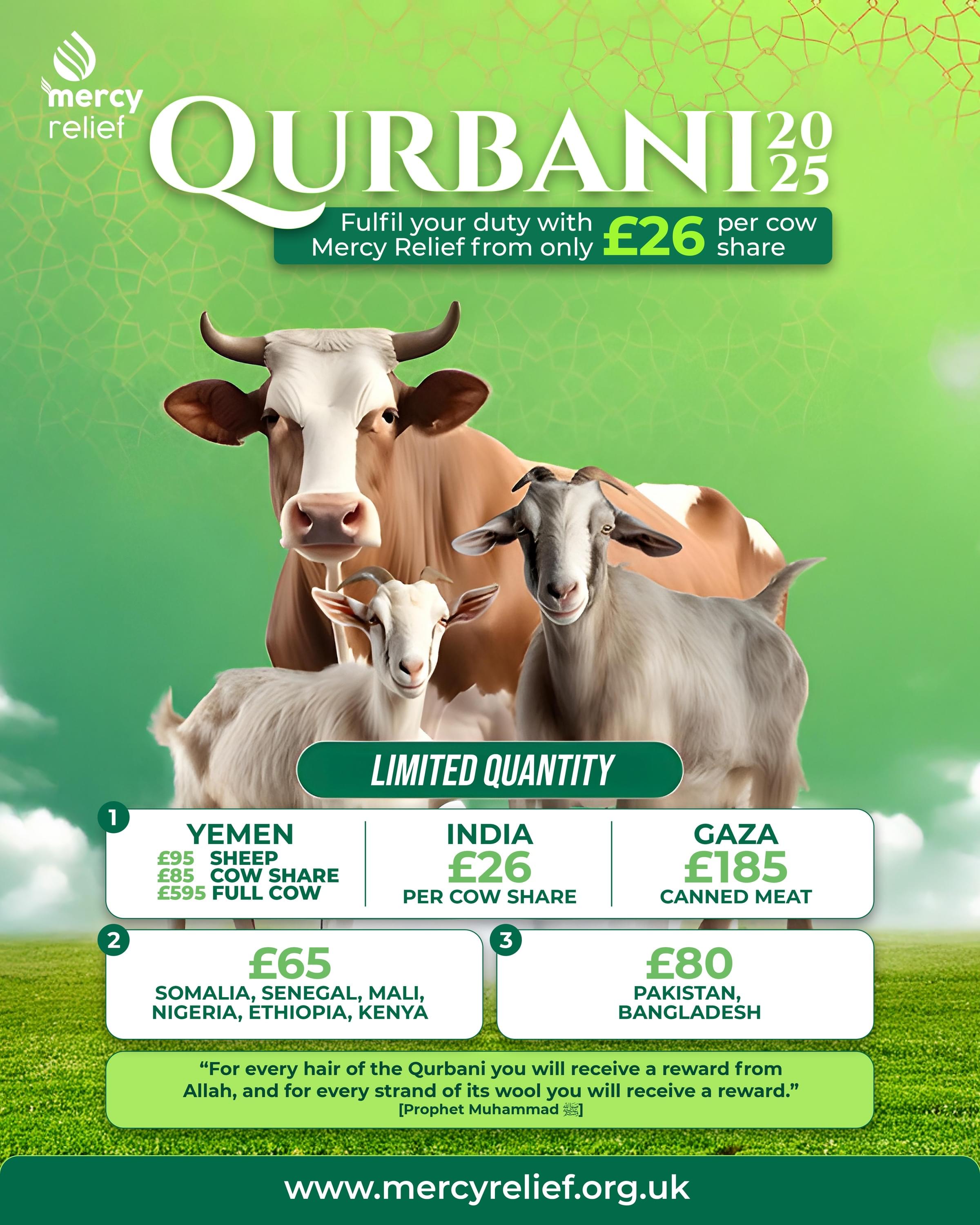Today, giving your Qurbani is an opportunity to honour the sacrifices made by our beloved Prophets and provide families with a nutritious meal on Eid day.
